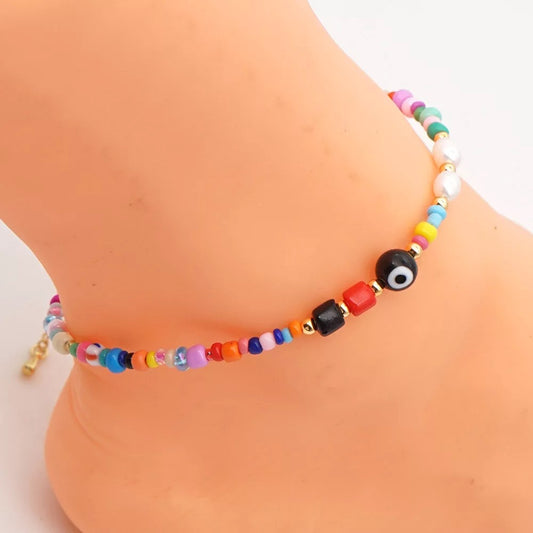 Multicolor Beads Evil Eye Anklet