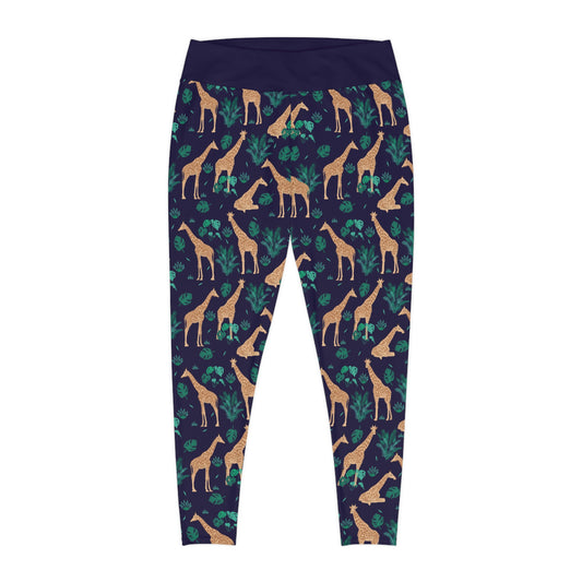 Giraffe Safari Plus Size Leggings One of a Kind Unique Workout Activewear tights for Mom fitness, Mothers Day, Girlfriend Christmas Gift