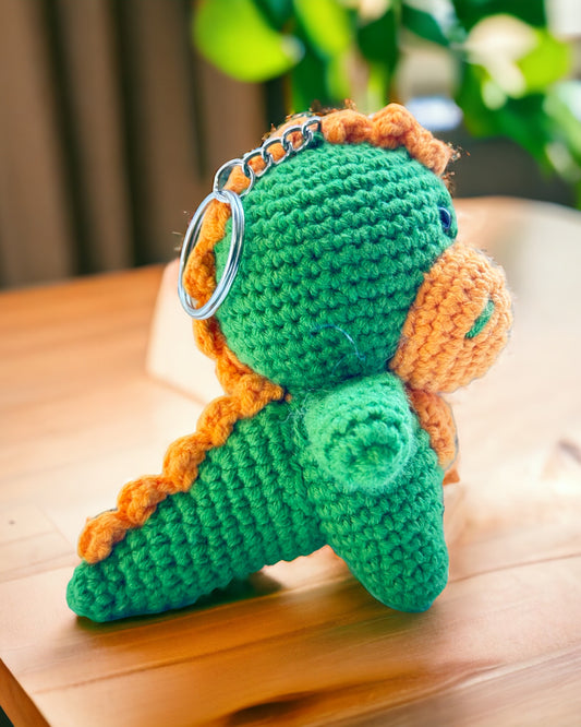 Dinosaur crochet Keychain Miniature amigurumi figurine for office desk decor, fidget sensory toy, unique gift for car dashboard . kawaii pocket hug