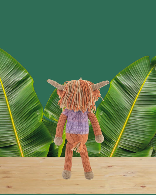 Highland Coo | Handmade Crochet stuffed Doll for Montessori Play, Nursery Decor, and Baby Shower Gifts . Granddaughter, niece, nephew & grandson