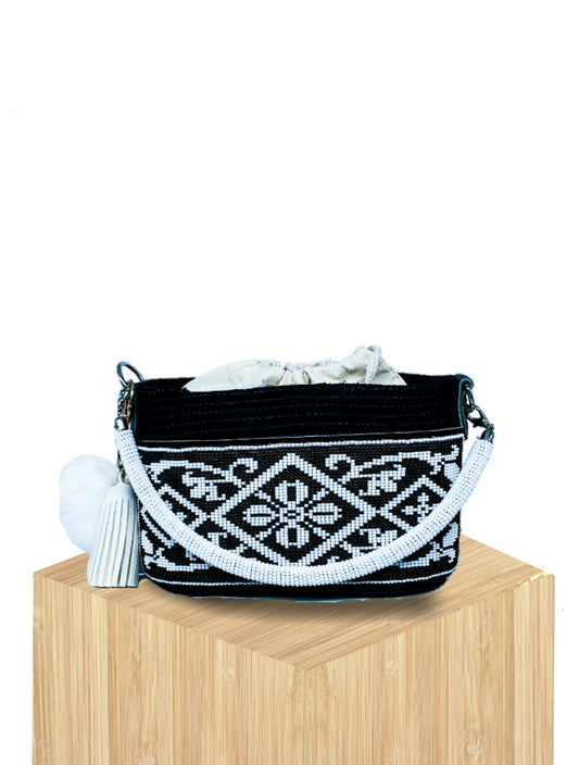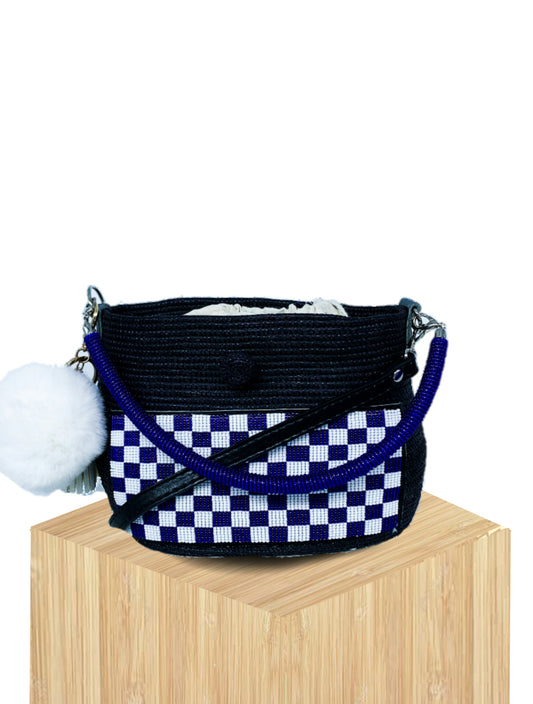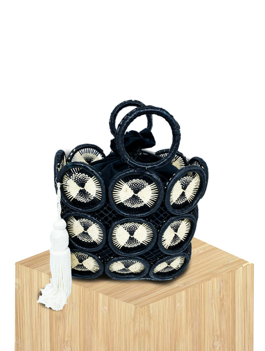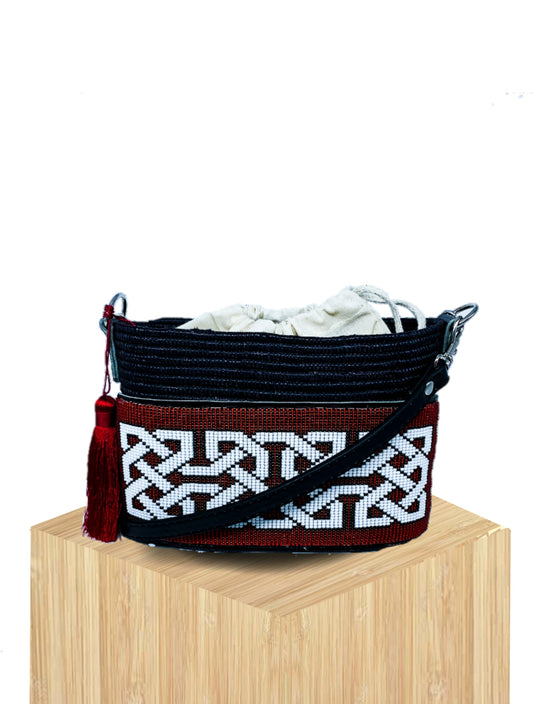 Handwoven Mini Basket Bag Rwanda with Beaded Front Panel
