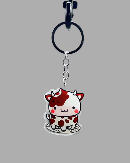 Cow Acrylic keychain, Farm Animal Cute kawaii memorial ornament, pet portrait charm gift backpack fob, dad car décor, first day of school gift
