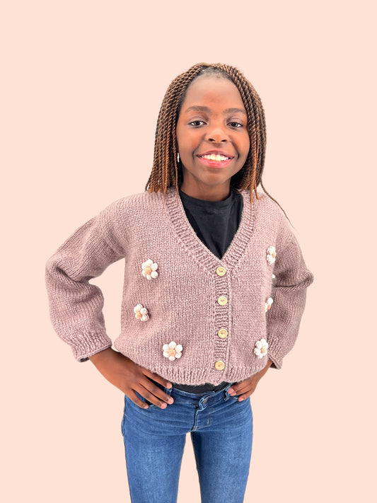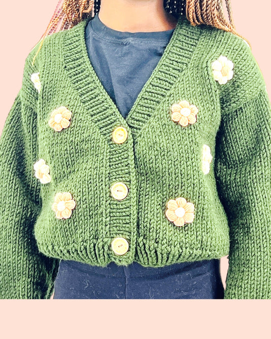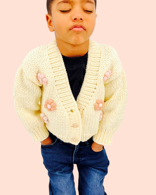 Kids Cardigan Sweater Daisy flowers unisex neutral colors handmade knitted artisan kids clothes