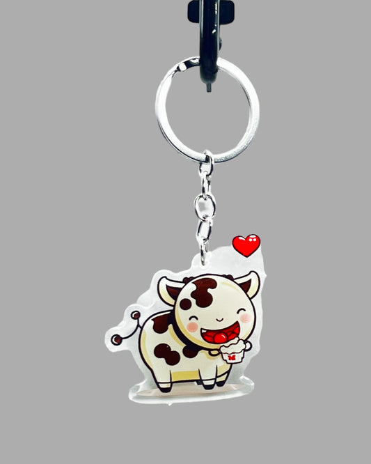 Milking Shorthorne Cow Acrylic keychain, Farm Animal Cute kawaii memorial ornament, pet portrait charm gift backpack fob, dad car décor, first day of school gift