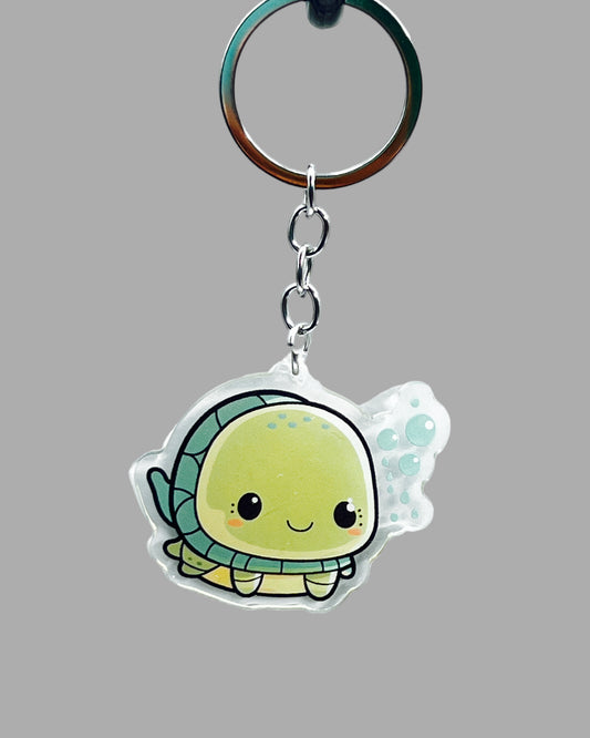 Turtle Acrylic keychain, Wildlife Cute kawaii memorial ornament, pet portrait charm, backpack fob, dad car décor, stocking stuffer