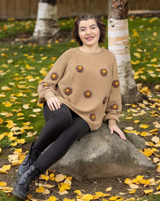 XL Daisy Flowers Women Cable Knit Sweater