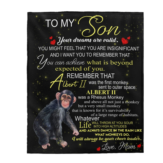 Albert the Monkey Velveteen Plush Blanket (Son from Mom)