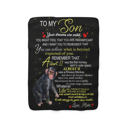 Albert the Monkey Sherpa Fleece Blanket (Son from Mom)