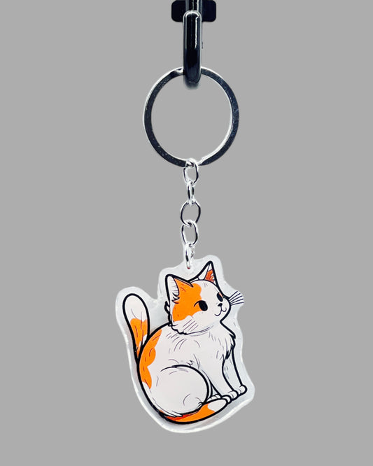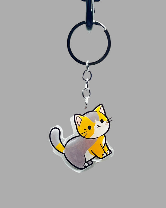 Calico Cat Acrylic keychain, Cute kawaii memorial ornament, pet portrait charm gift backpack fob, dad car décor, first day of school gift