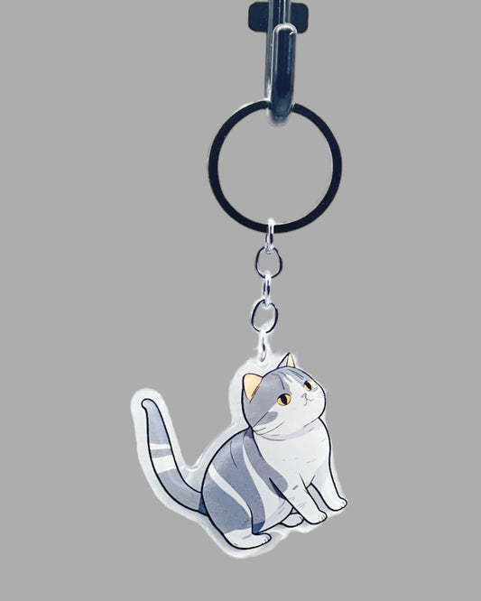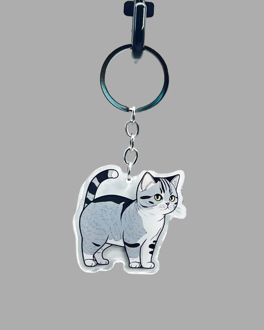 American Short Hair Cat Acrylic Keychain Cute kawaii animal memorial ornament, pet portrait charm gift backpack photo fob or dad car décor