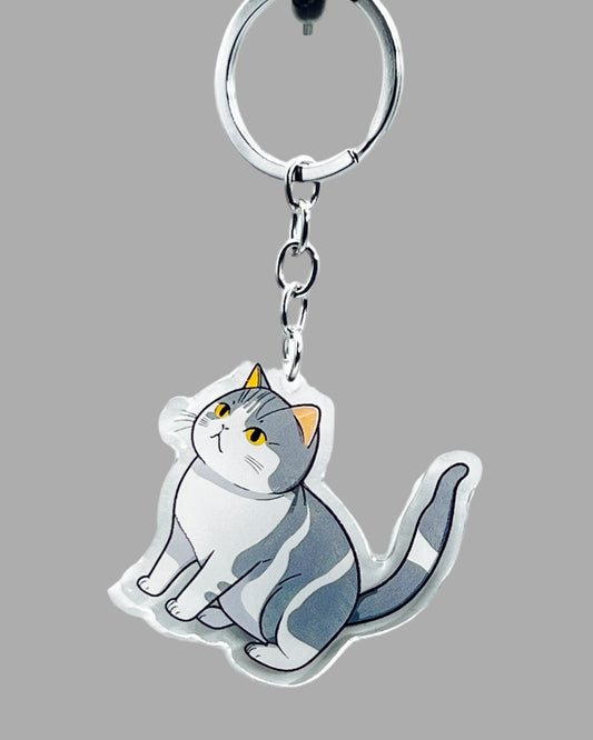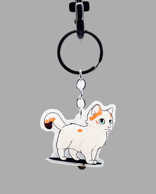 Cymric Cat Acrylic keychain, Cute kawaii memorial ornament, pet portrait charm gift backpack fob, dad car décor, first day of school gift