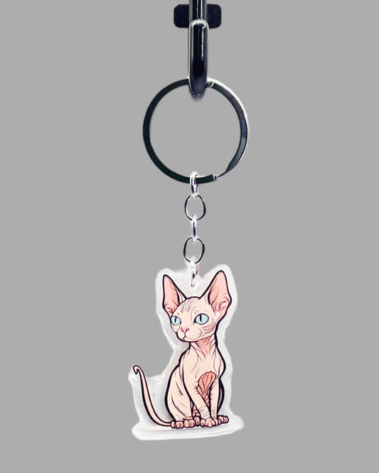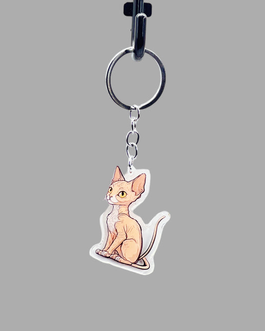 Donskoy Cat Acrylic keychain, Cute kawaii memorial ornament, pet portrait charm gift backpack fob, dad car décor, first day of school gift