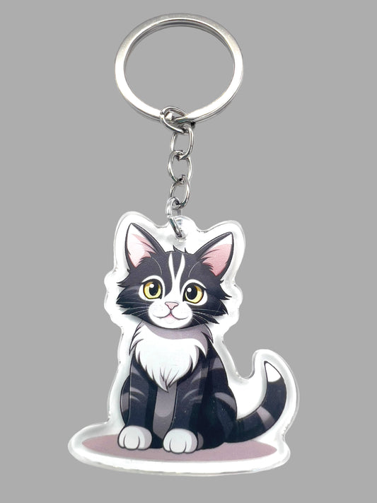 Tabby black white cat kawaii Acrylic Keychain, Cute kawaii memorial ornament, pet portrait charm, backpack fob, dad car décor, stocking stuffer
