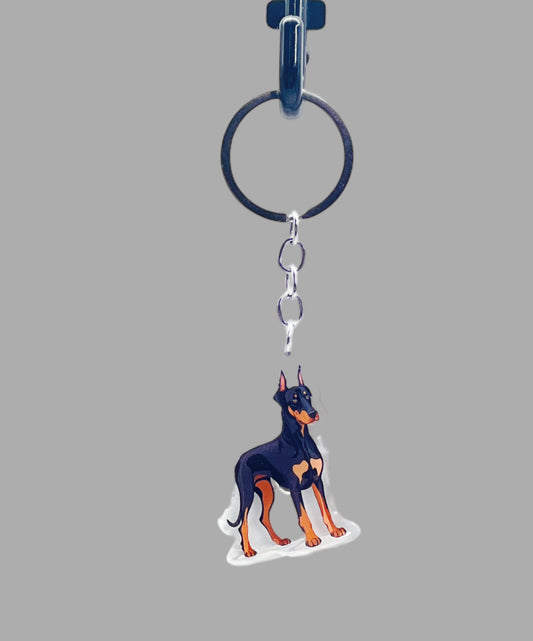 Doberman Pinscher Dog Acrylic Keychain Cute kawaii memorial ornament, pet portrait charm gift backpack photo fob, dad car décor, dog mom gift