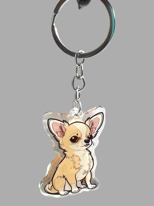 Chihuahua Acrylic Keychain Cute kawaii memorial ornament, pet portrait charm gift backpack fob, dad car décor, dog mom