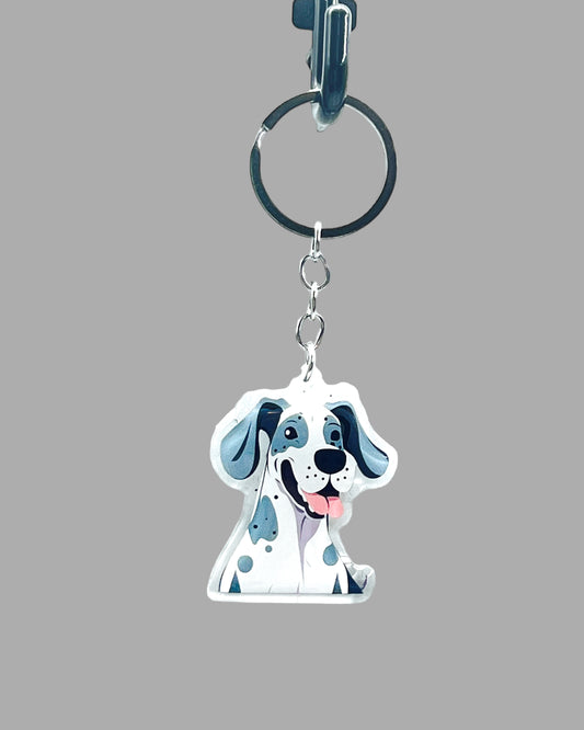 Great Dane Dog Acrylic keychain, Cute kawaii memorial ornament, pet portrait charm gift, backpack photo fob, dad car décor, dog mom gift