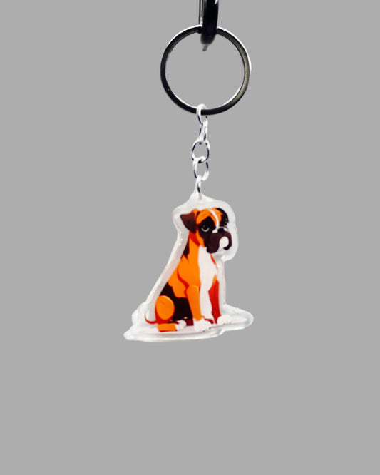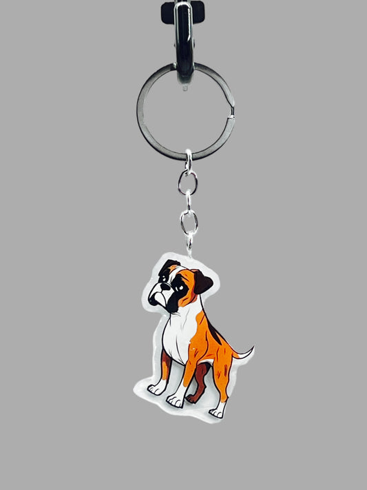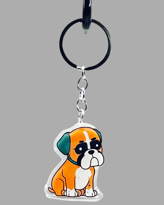 Boxer Dog Acrylic keychain, Cute kawaii memorial ornament, pet portrait charm gift backpack fob, dad car décor, first day of school