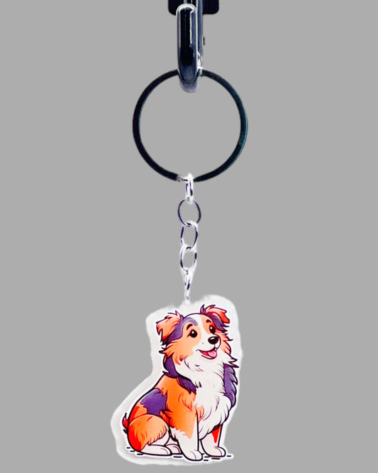 Border Collie Dog Acrylic keychain, Cute kawaii memorial ornament, pet portrait charm gift backpack fob, dad car décor, first day of school