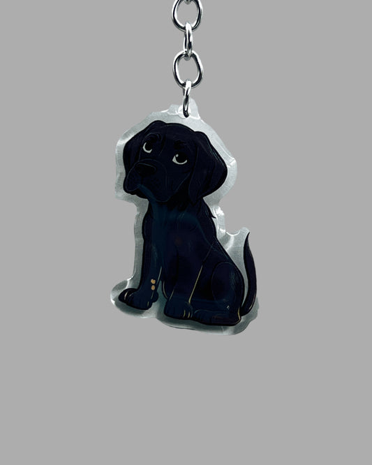 Black Labrador Dog Acrylic keychain, Cute kawaii memorial ornament, pet portrait charm gift backpack fob, dad car décor, first day of school