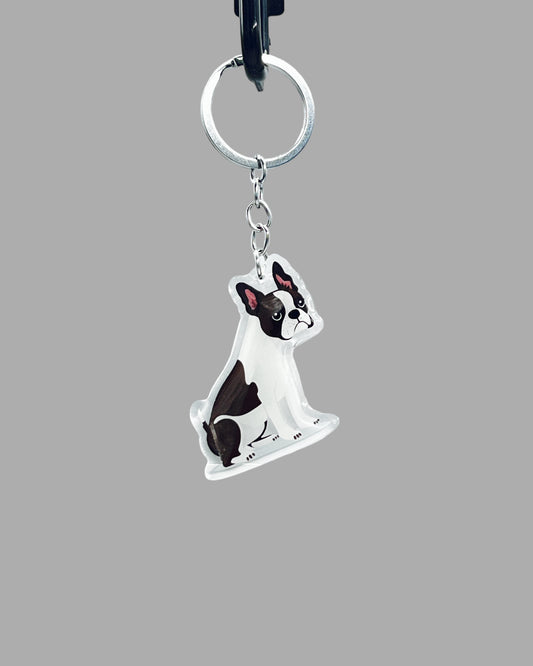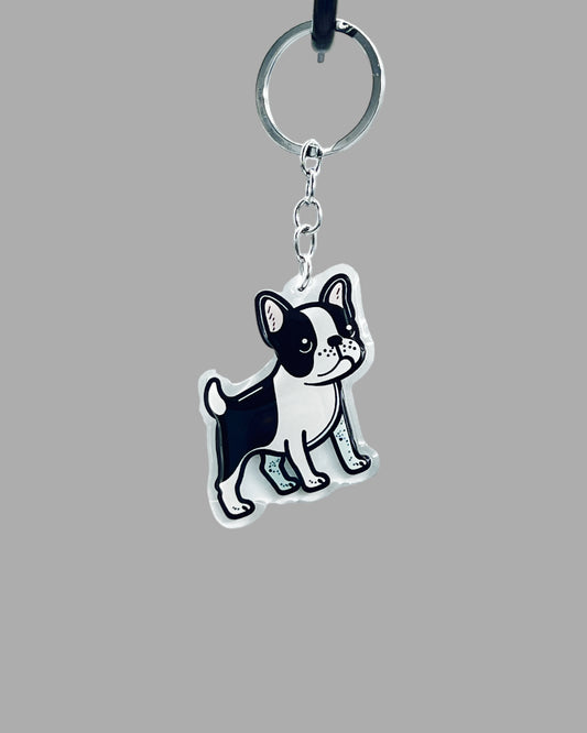 Boston Terrier Dog Acrylic keychain, Cute kawaii memorial ornament, pet portrait charm gift backpack fob, dad car décor, first day of school
