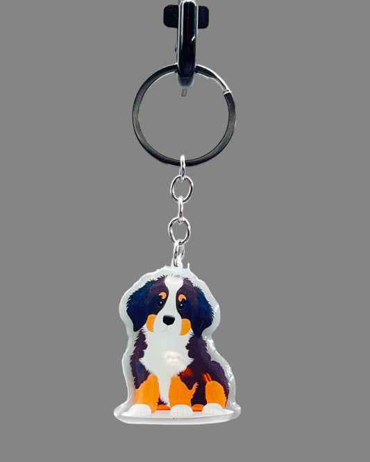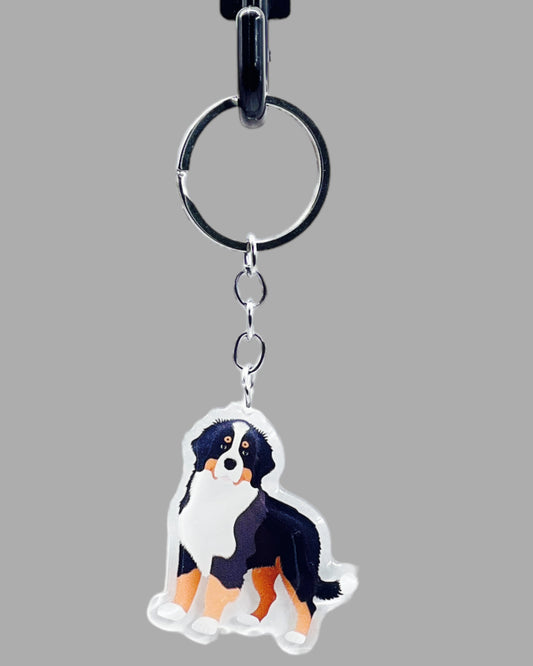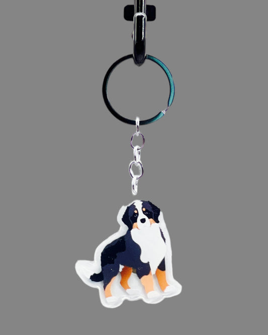 Bernese Mountain Dog Acrylic keychain, Cute kawaii memorial ornament, pet portrait charm gift backpack fob, dad car décor, first day of school