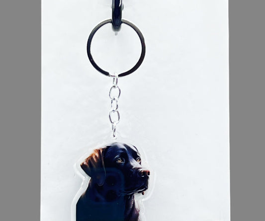 Chocolate Labrador Dog Acrylic keychain, Cute kawaii memorial ornament, pet portrait charm gift backpack photo fob, dad car décor, dog mom gift