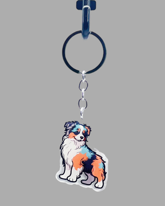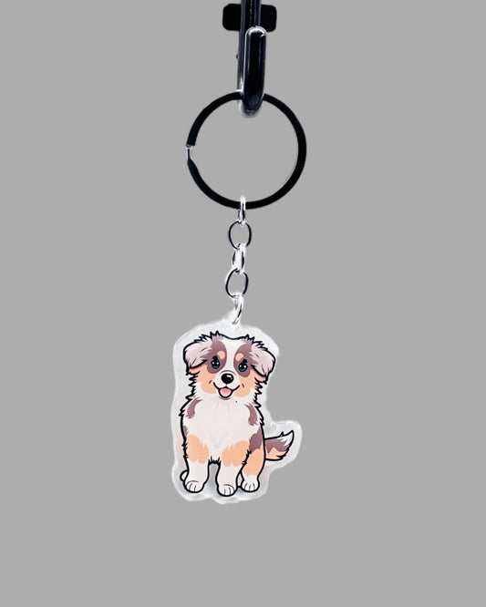 Australian Shepherd Dog Acrylic keychain Cute kawaii animal memorial ornament, pet portrait charm gift backpack photo fob or dad car décor