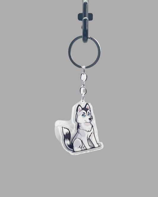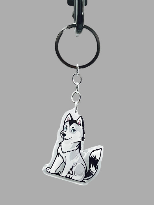 Husky Dog Acrylic Keychain, Cute kawaii memorial ornament, pet portrait charm gift, backpack fob, dad car décor, dog mom gift
