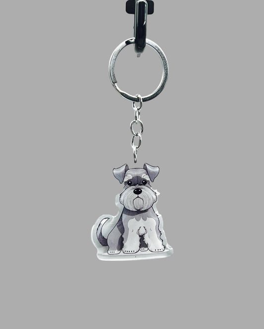Miniature Schnauzer Dog Acrylic Keychain, Cute kawaii memorial ornament, pet portrait charm gift backpack fob, dad car décor, first day of school gift