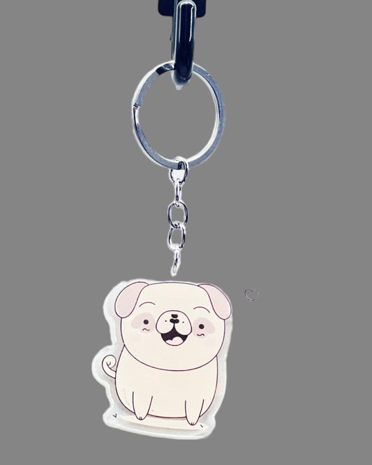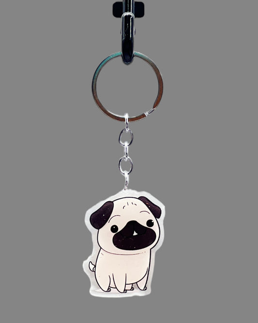 Pug Dog Acrylic keychain, Cute kawaii memorial ornament, pet portrait charm gift, backpack fob, dad car décor, dog mom gift