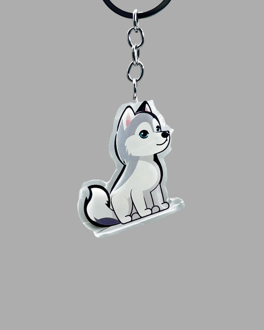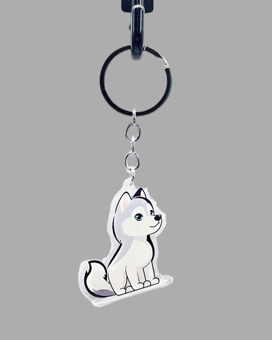Husky Dog Acrylic Keychain, Cute kawaii memorial ornament, pet portrait charm gift, backpack fob, dad car décor, dog mom gift