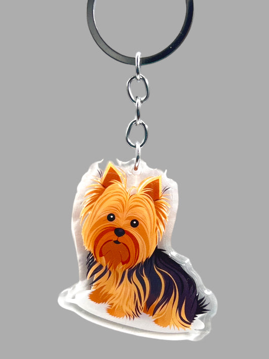 Yorkshire Terrier Dog Acrylic Keychain, Cute kawaii memorial ornament, pet portrait charm gift, backpack photo fob, dad car décor, dog mom gift