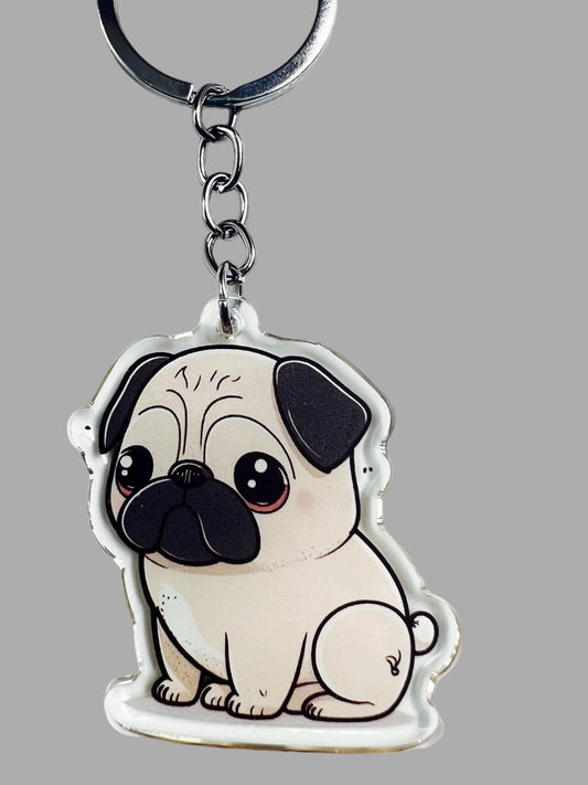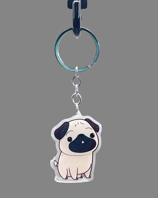 Pug Dog Acrylic keychain, Cute kawaii memorial ornament, pet portrait charm gift, backpack fob, dad car décor, dog mom gift