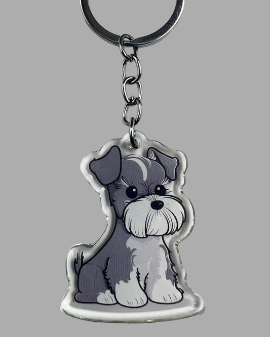 Schnauzer DogAcrylic Keychain, Cute kawaii memorial ornament, pet portrait charm gift, backpack fob, dad car décor, dog mom gift