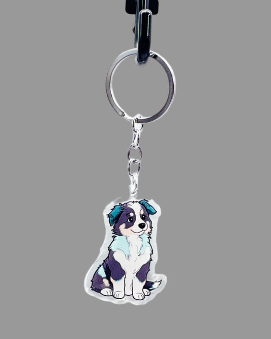 Australian Shepherd Dog Acrylic keychain Cute kawaii animal memorial ornament, pet portrait charm gift backpack photo fob or dad car décor