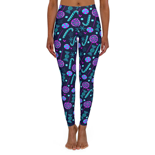 Candy Cane Christmas Outfit Women's Leggings, One of a Kind Gift - Unique Workout Activewear tights for Wife, Girlfriend, Mothers Holiday Gift