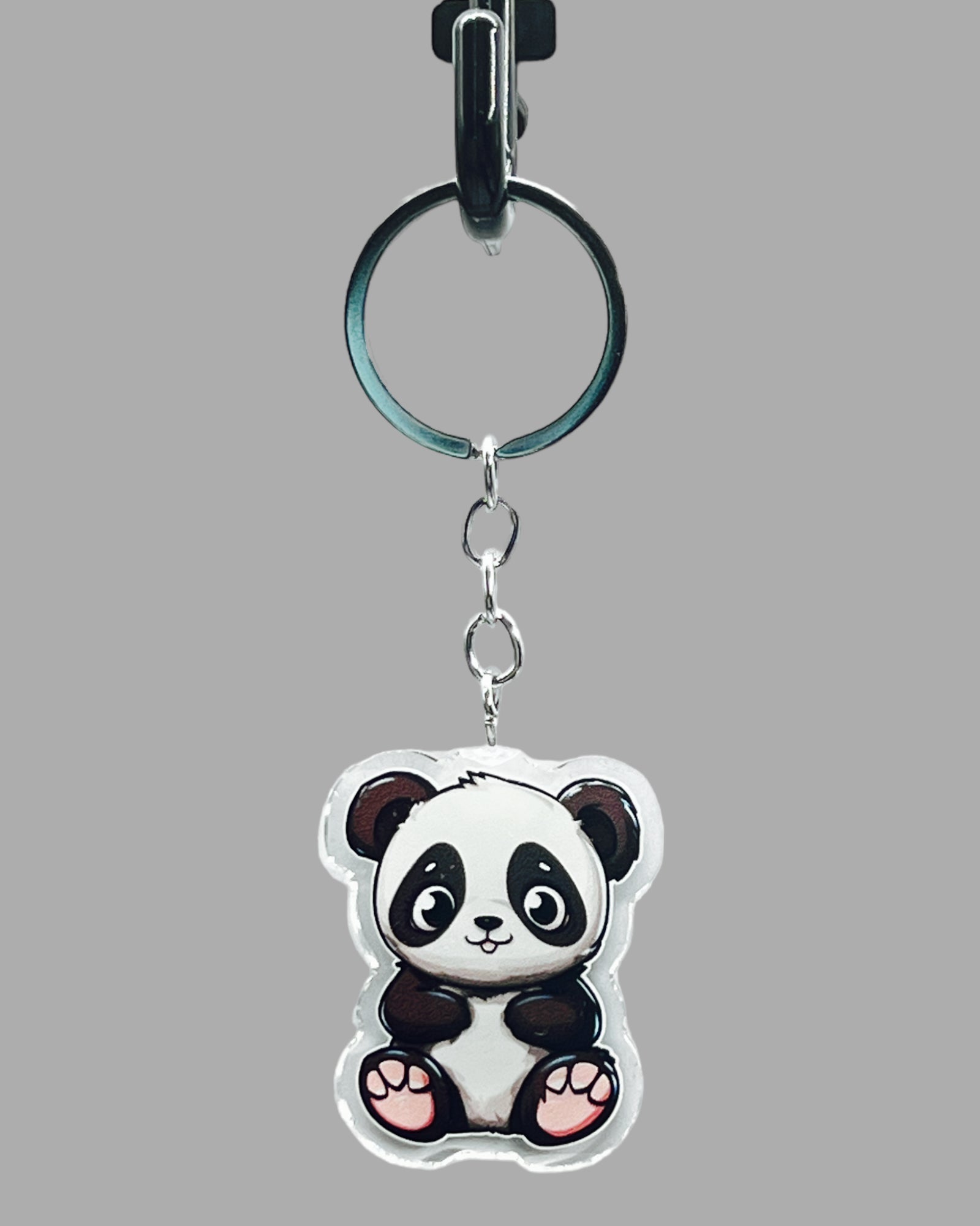 Panda Bear Acrylic Keychain, Wildlife Cute kawaii memorial ornament, pet portrait charm gift backpack fob, dad car décor, first day of school gift