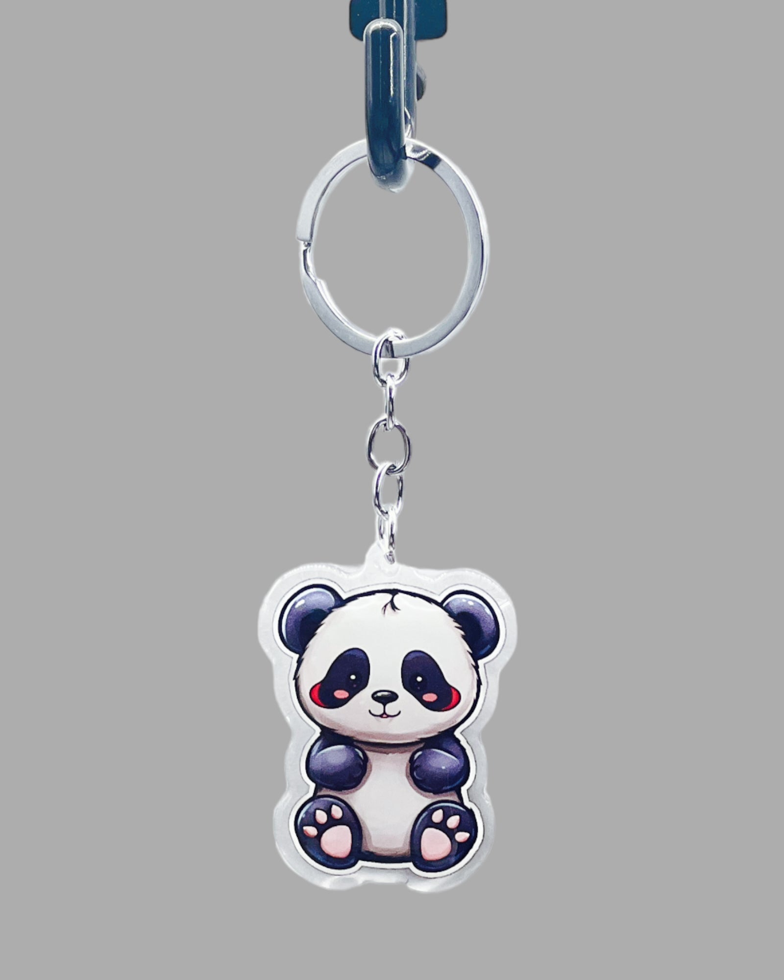 Panda Bear Acrylic Keychain, Wildlife Cute kawaii memorial ornament, pet portrait charm gift backpack fob, dad car décor, first day of school gift