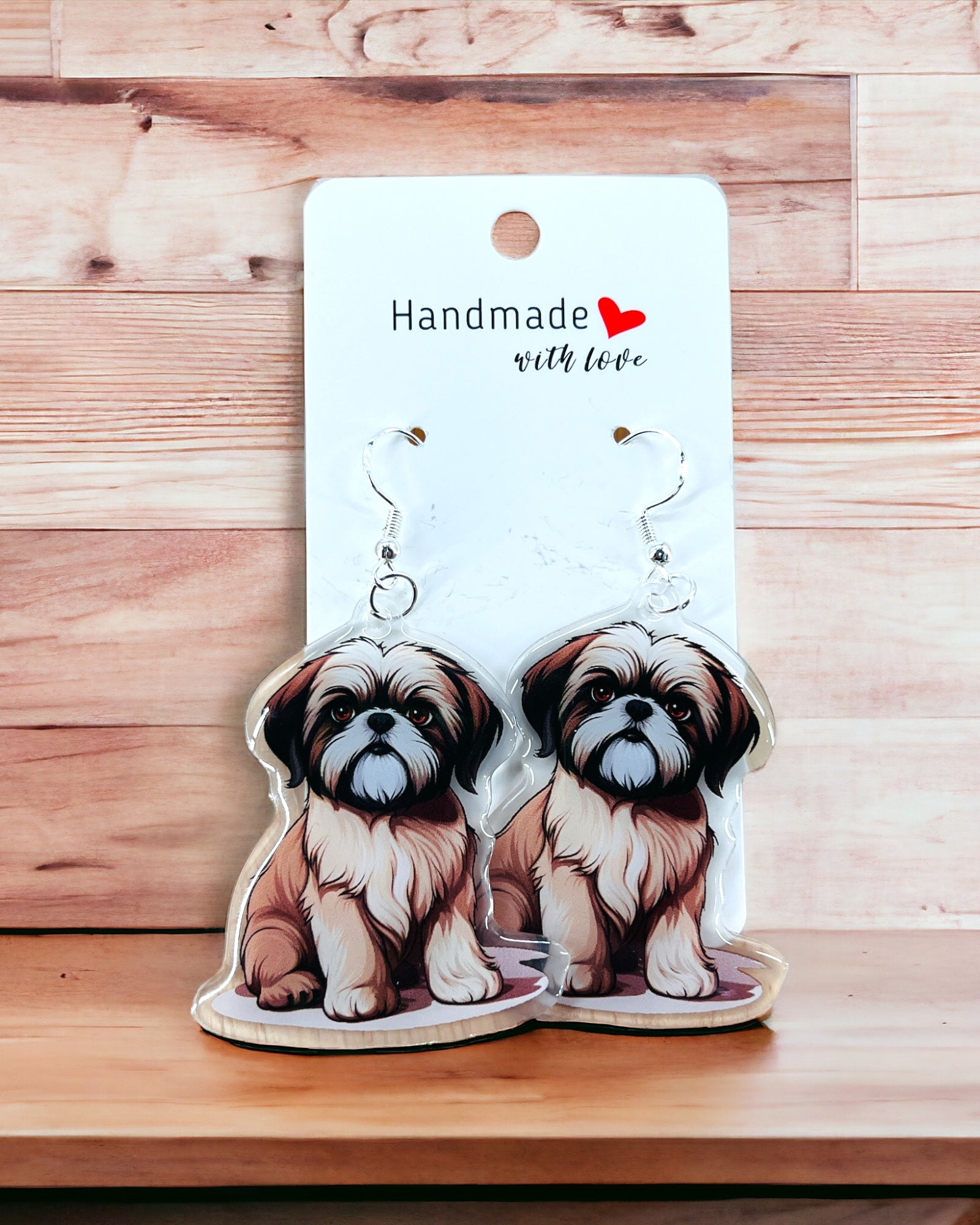 shih tzu Dog mom Acrylic fun kawaii earrings, pet memorial charm, cute puppy, loss sympathy, quirky earrings, grief gift for her, animal lover gift