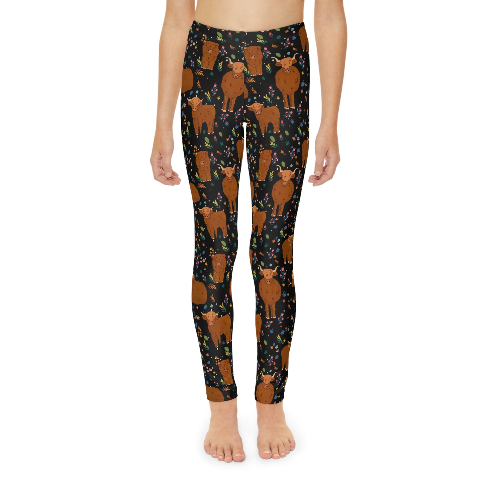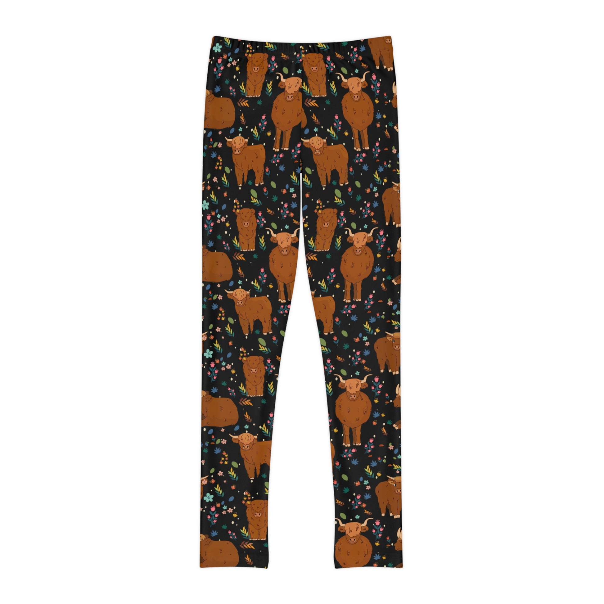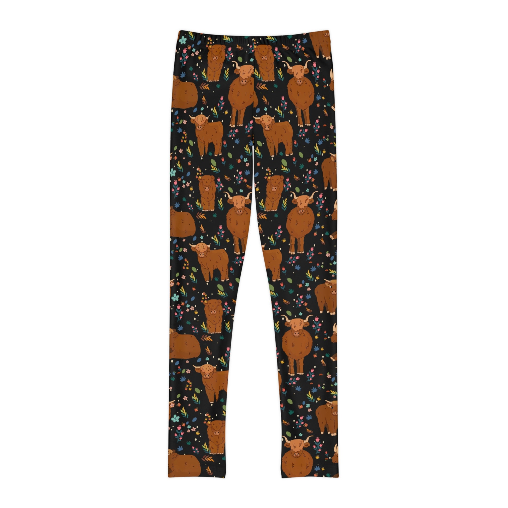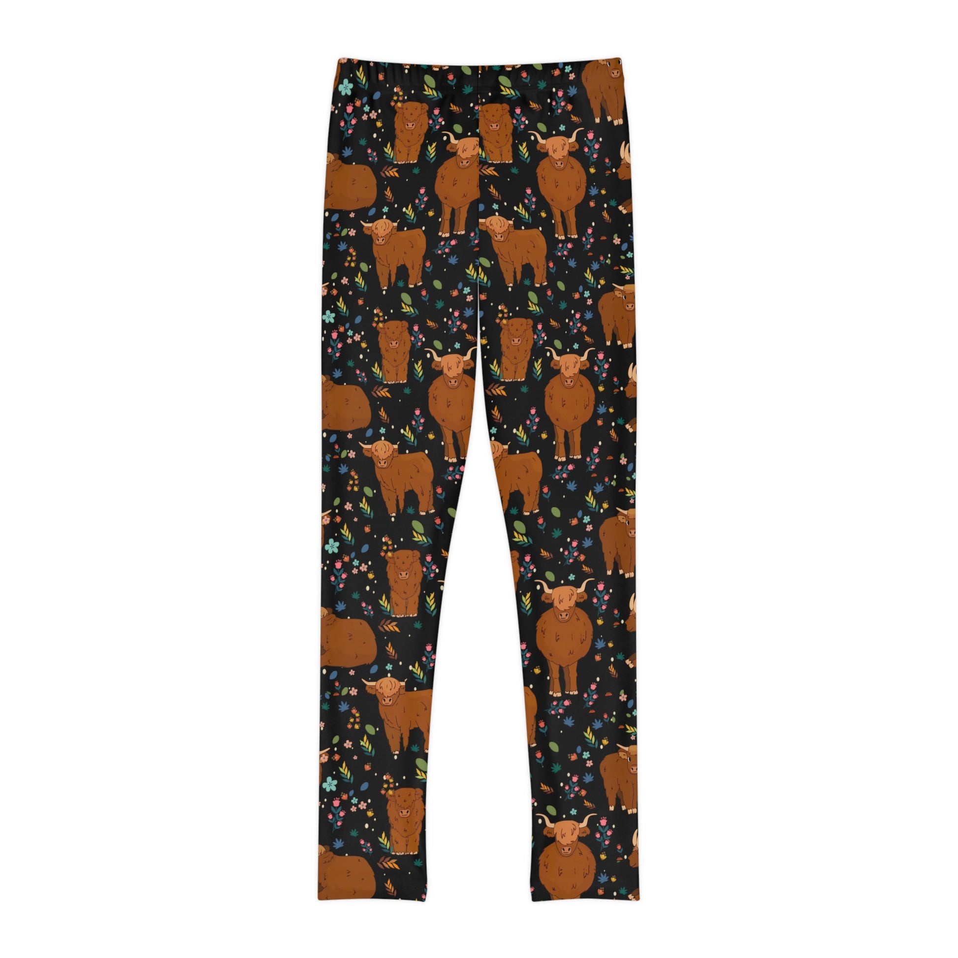 Highland Cow Cute Farm animal Youth Leggings, One of a Kind Gift - Workout Activewear tights for kids, Granddaughter, Niece Christmas Gift