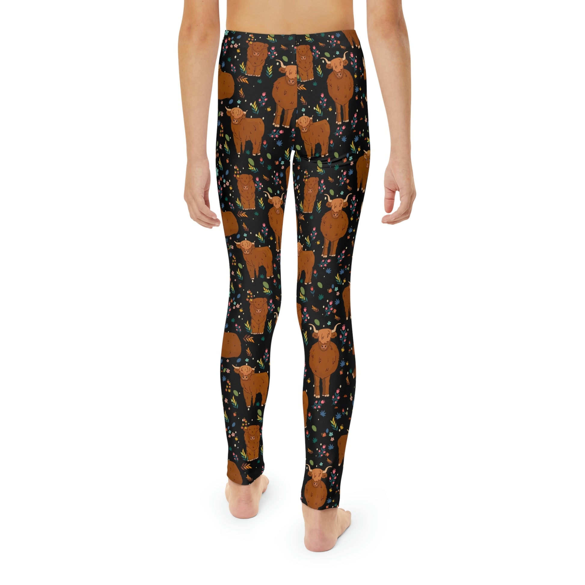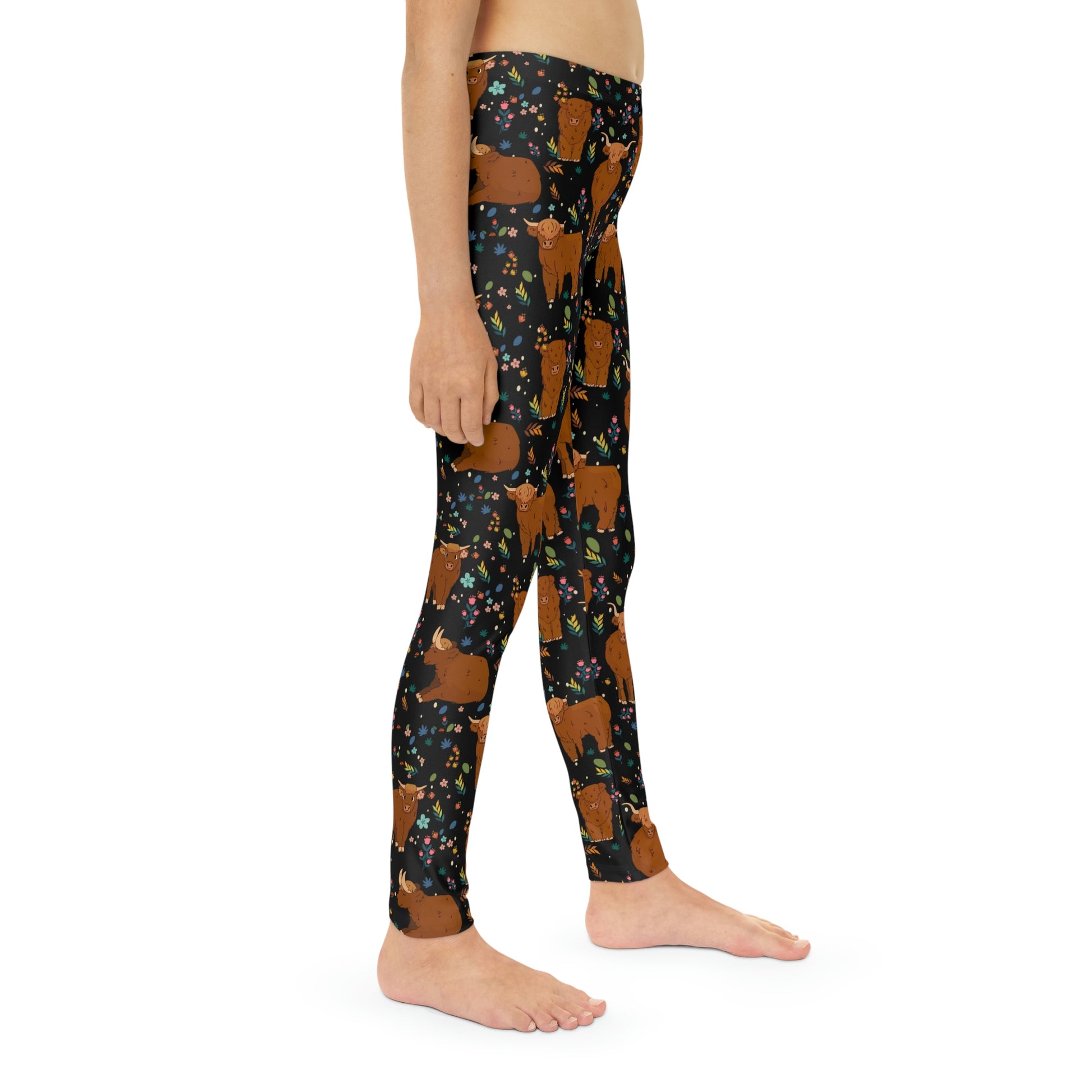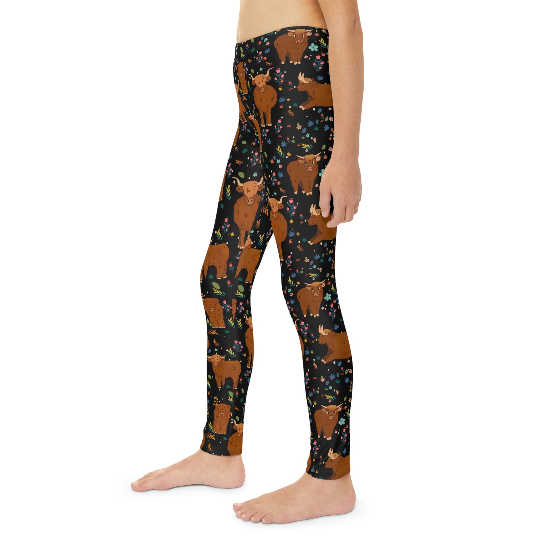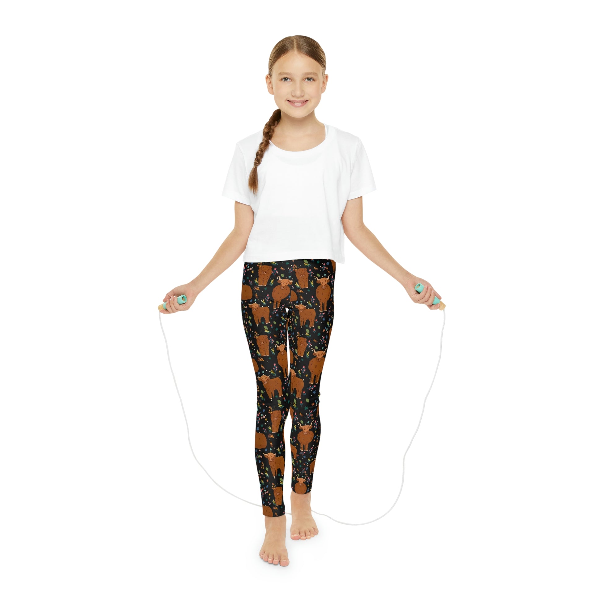 Highland Cow Cute Farm animal Youth Leggings, One of a Kind Gift - Workout Activewear tights for kids, Granddaughter, Niece Christmas Gift