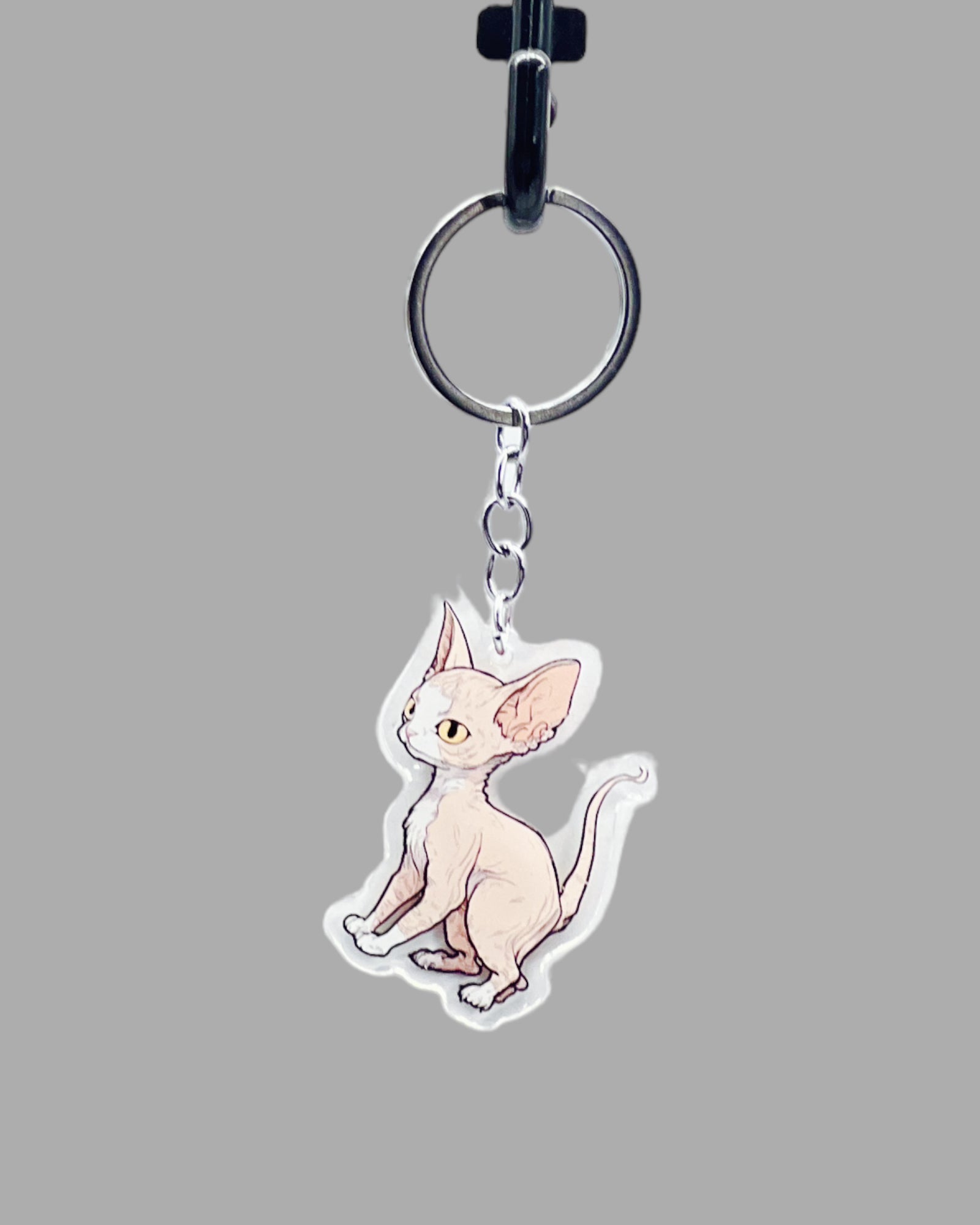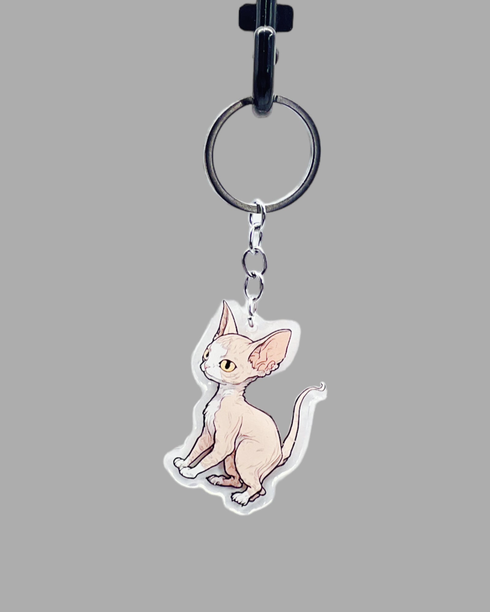 Sphynx Cat Acrylic keychain, Cute kawaii memorial ornament, pet portrait charm, backpack fob, dad car décor, stocking stuffer, birthday gift