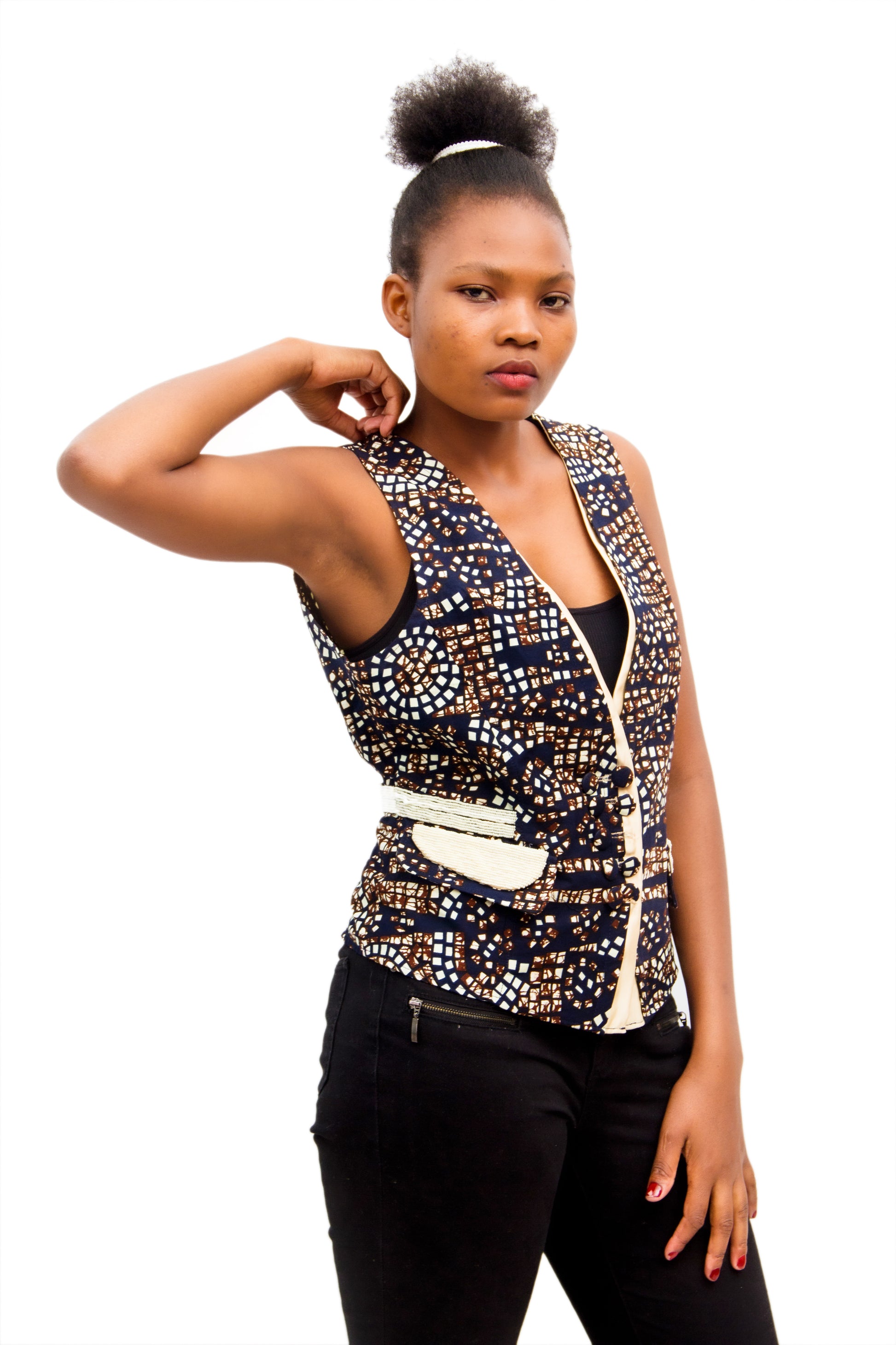 Beaded African Wax Waistcoat
