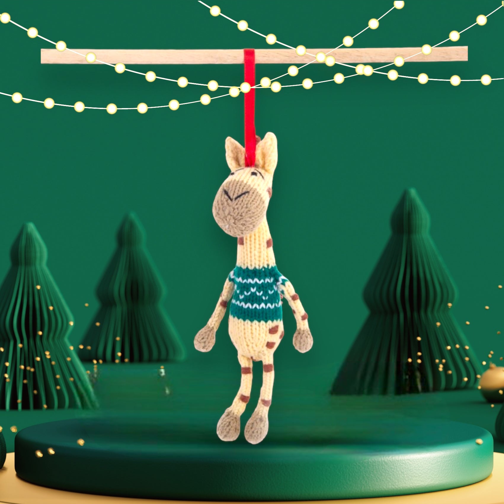 Giraffe Green Christmas Crochet ornament Amigurumi Cute Desk Decor Toy, Baby's First Nativity, Stocking Stuffer, Unique Festive Decor