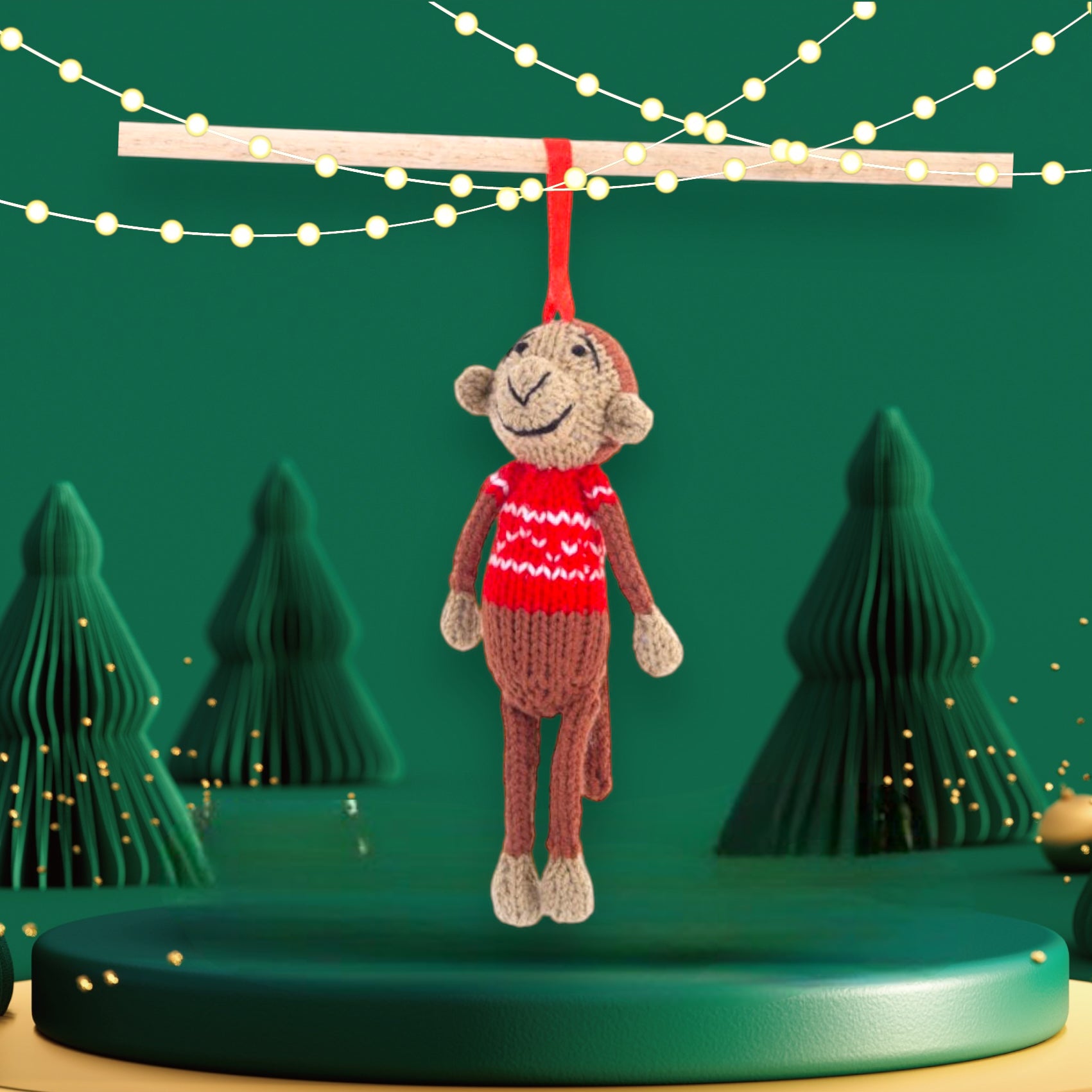 Monkey Red Christmas Crochet ornament Amigurumi Cute Desk Decor Toy, Baby's First Nativity, Stocking Stuffer, Unique Festive Decor