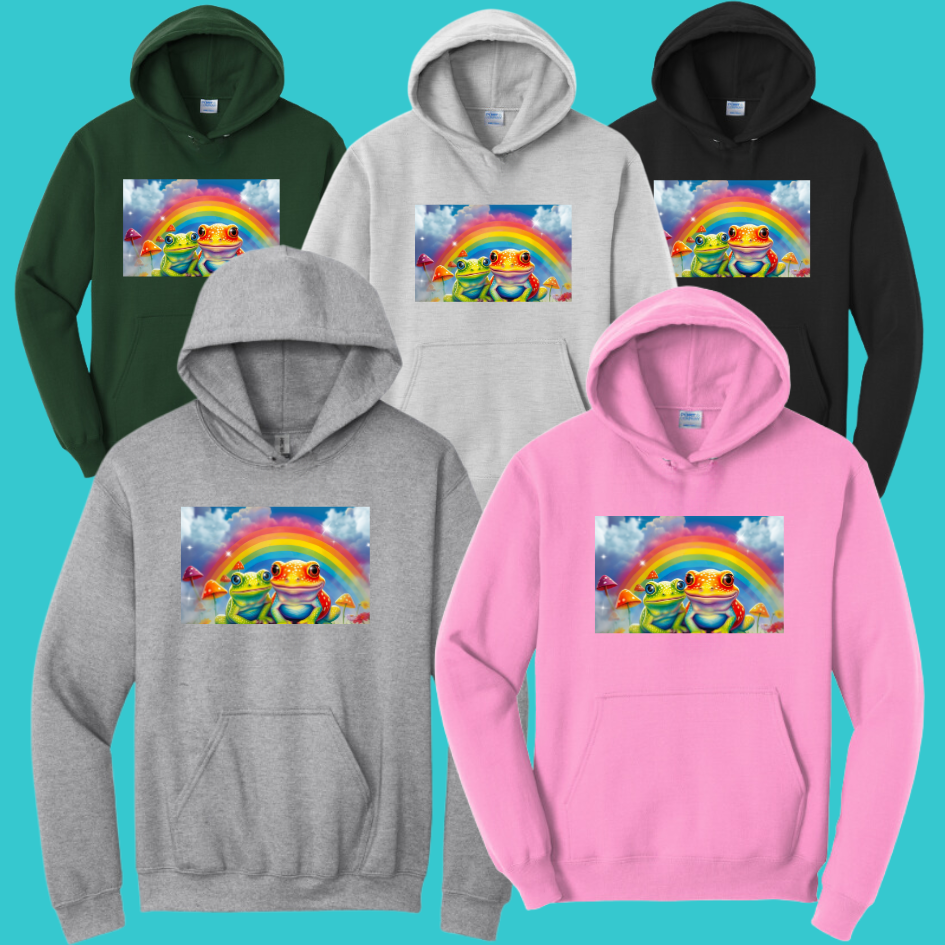 Frog Sweatshirt Unisex Clothing Kawaii Hoodie : Best Friend Gift . Fall Winter Essential . Frog and Toad Rainbow