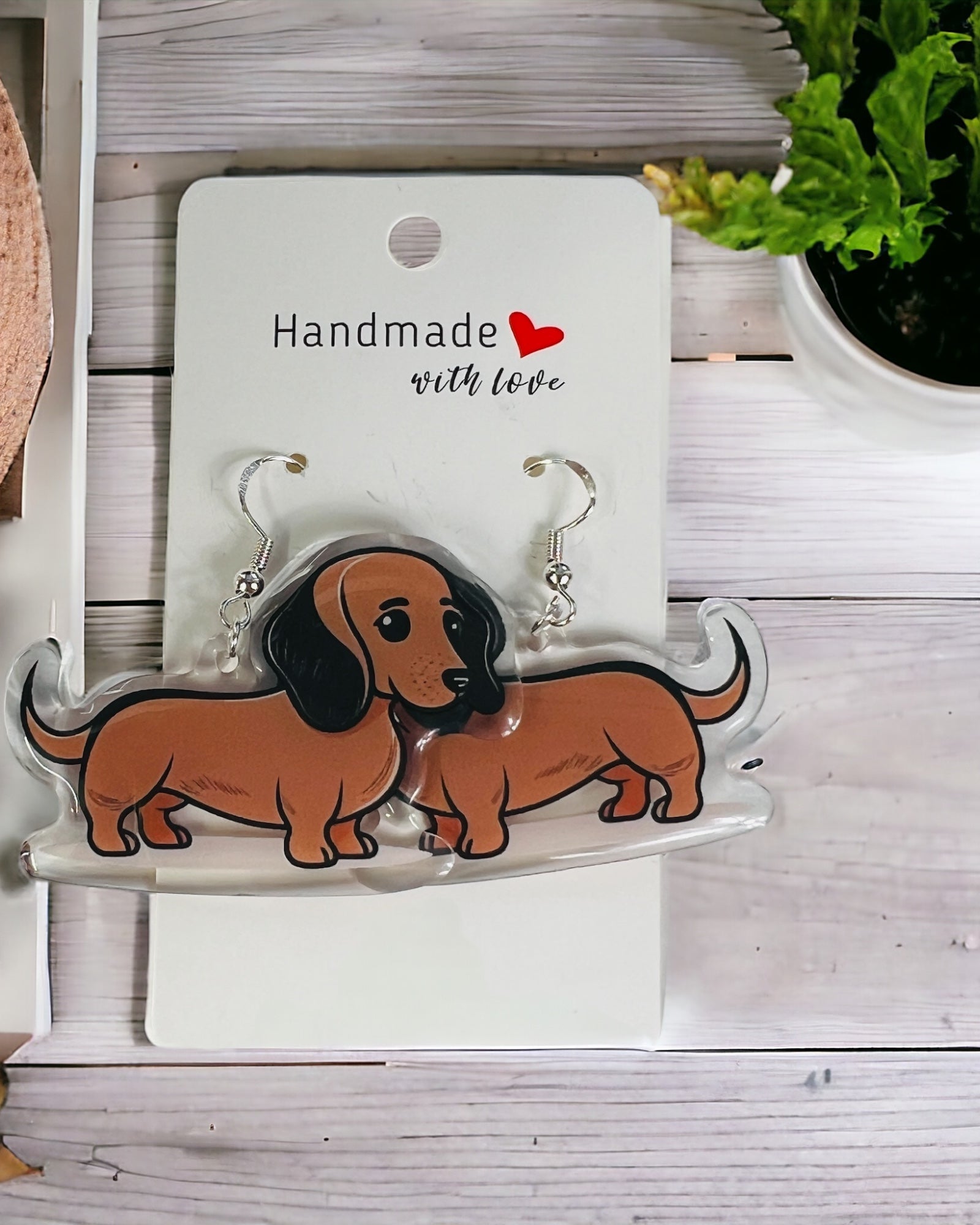 Dachshund Dog mom Acrylic fun kawaii earrings, pet memorial charm, cute puppy, loss sympathy, quirky earrings, grief gift for her, animal lover