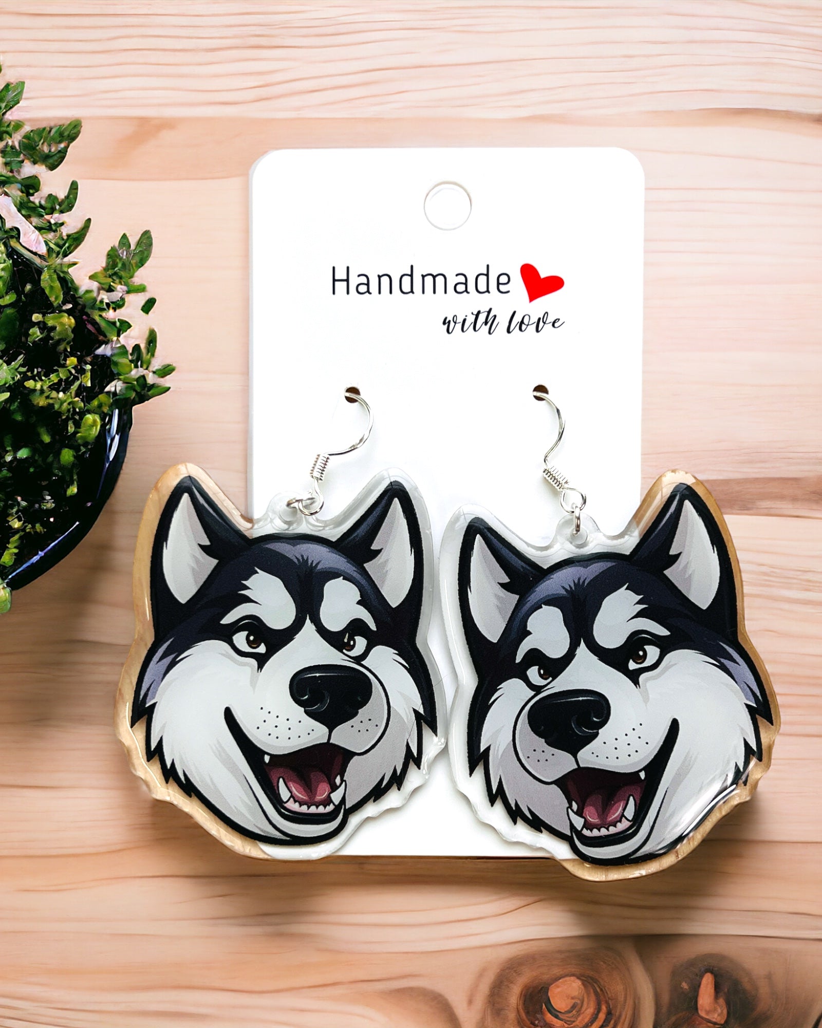 Husky Dog mom Acrylic fun kawaii earrings, pet memorial charm, cute puppy, loss sympathy, quirky earrings, grief gift for her, animal lover gift