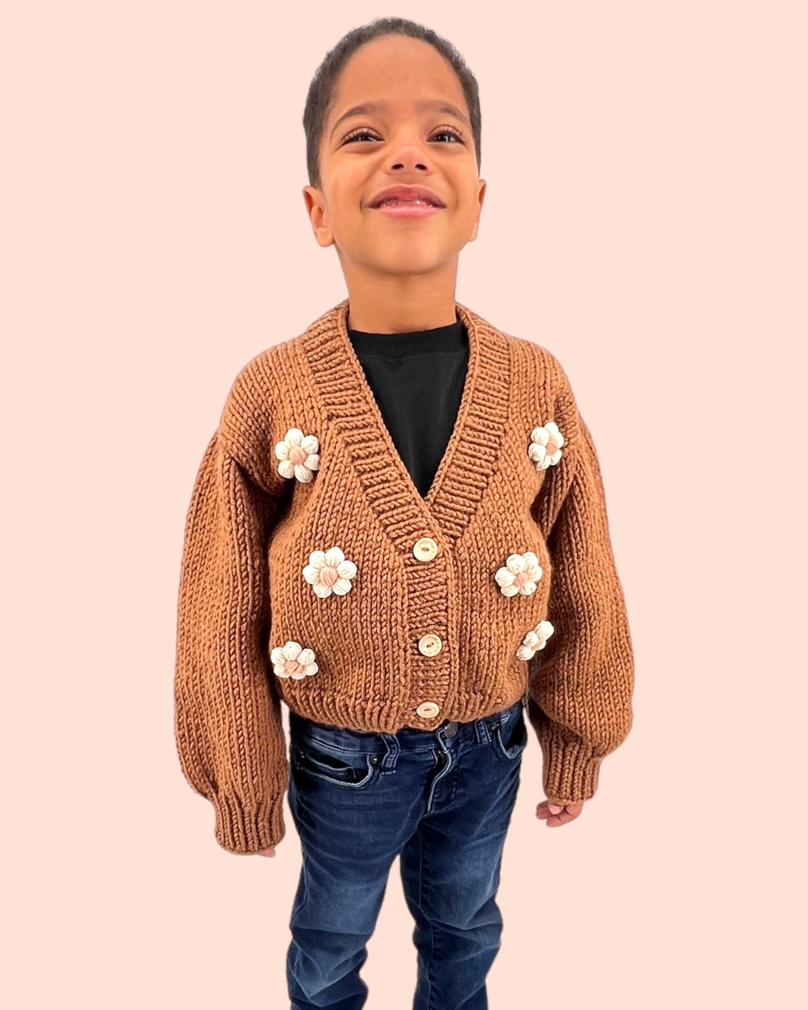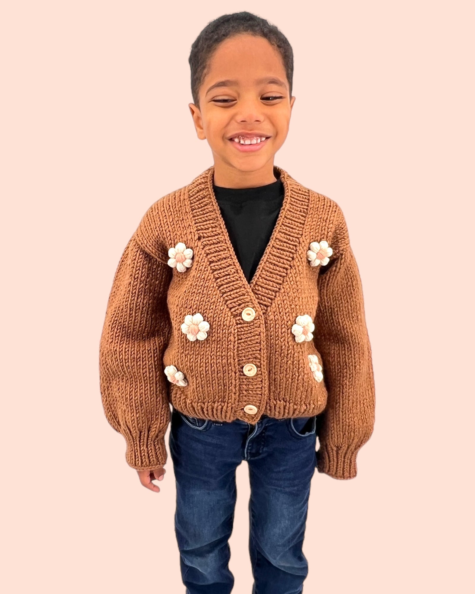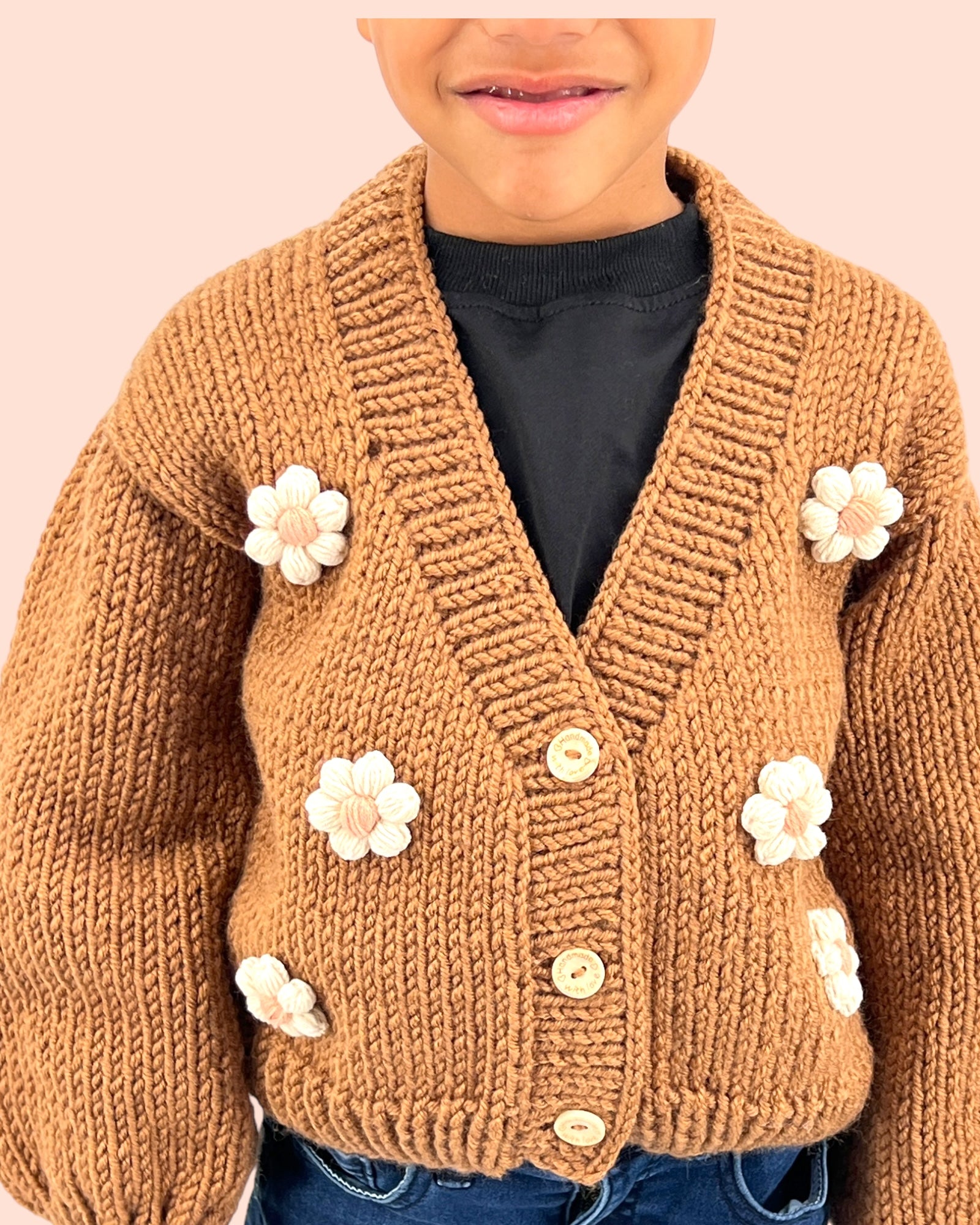 Kids Cardigan Sweater Daisy flowers unisex neutral colors handmade knitted artisan kids clothes