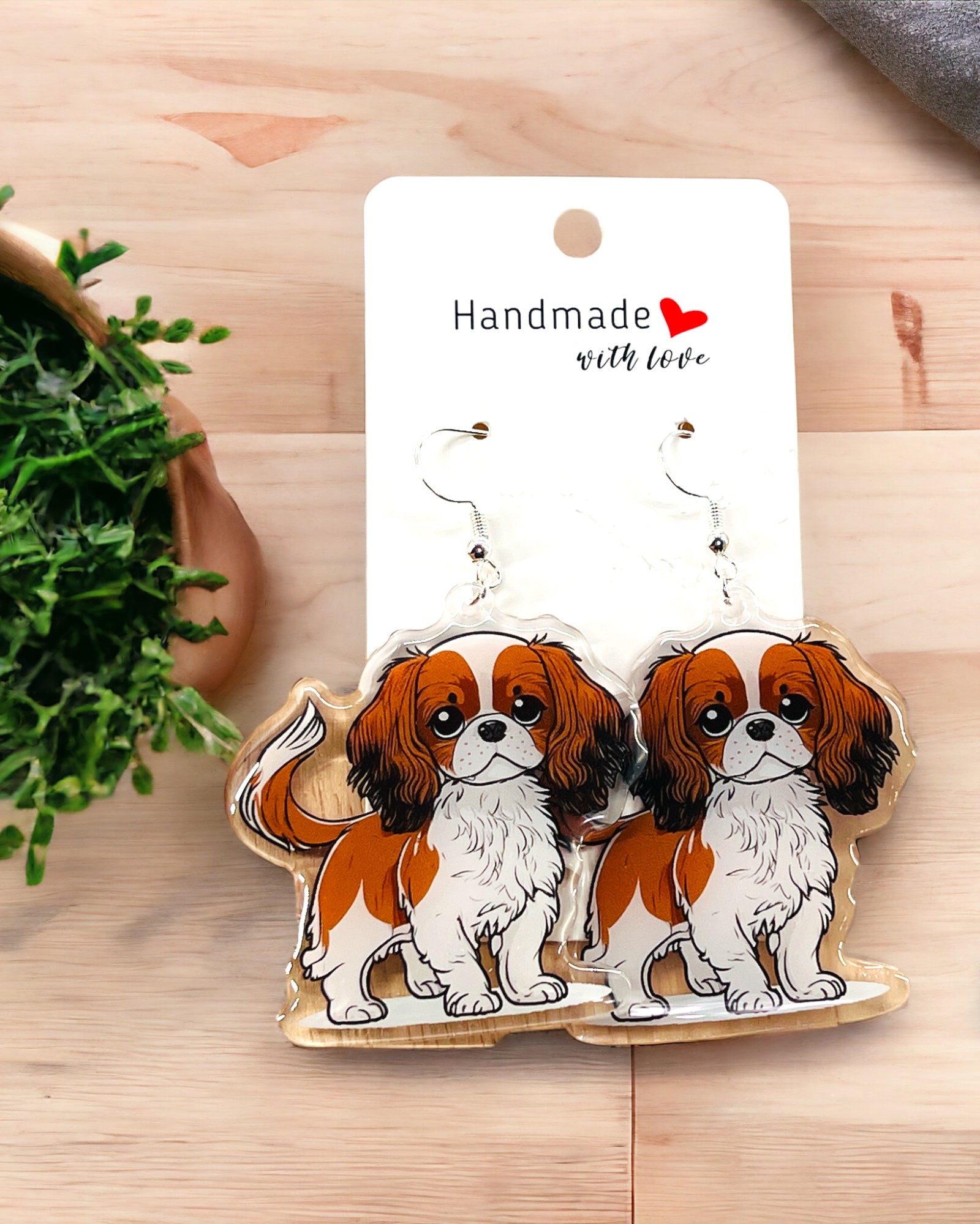 King Charles Cavalier Dog Acrylic Earrings Dog mom Acrylic fun kawaii earrings, pet memorial charm, cute puppy, loss sympathy, quirky grief gift for her